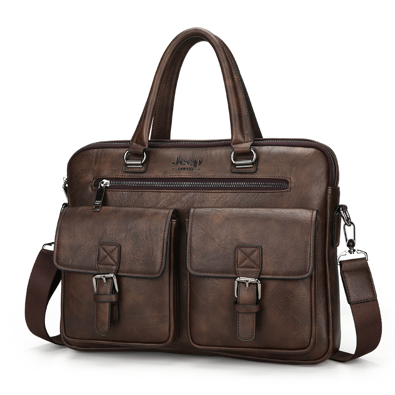 حقيبة أعمال جلد صناعي فاخر من Jeep__لون بني فاتح
